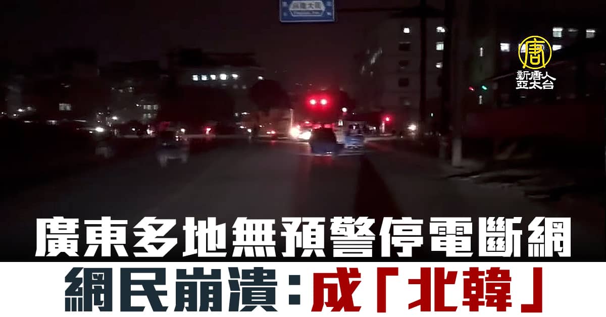 【新唐人亞太台 2020 年 12 月 21 日訊】歡迎回來,近期,中國多省區以用電存在較大缺口為由,相繼限電停工限產。周一(12月21號)凌晨,限電伸延到南方的廣東,多地在無預警下停電斷水斷網,街道漆黑一片。網民調侃,中國多地晚間成了北韓。還有海外網友說:「廣東都能缺電,加速朝鮮化。」