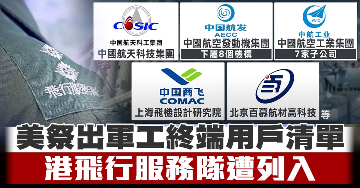 美祭出軍工終端用戶清單 港飛行服務隊遭列入
