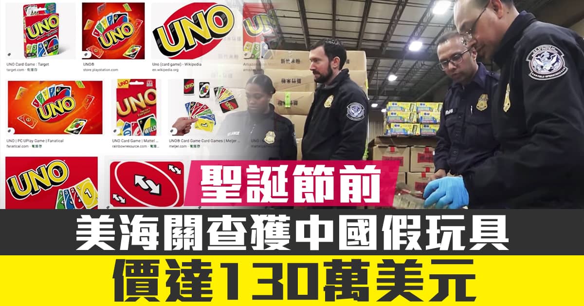 新澤西州紐瓦克海關在11月底查獲一批來自中國的假冒玩具商品,包括:超過14萬張UNO紙牌、9,600個驚喜玩具球(LOL Surprise!Under Wraps balls) 以及1,980個驚喜娃娃,估計價值大約130萬美元。