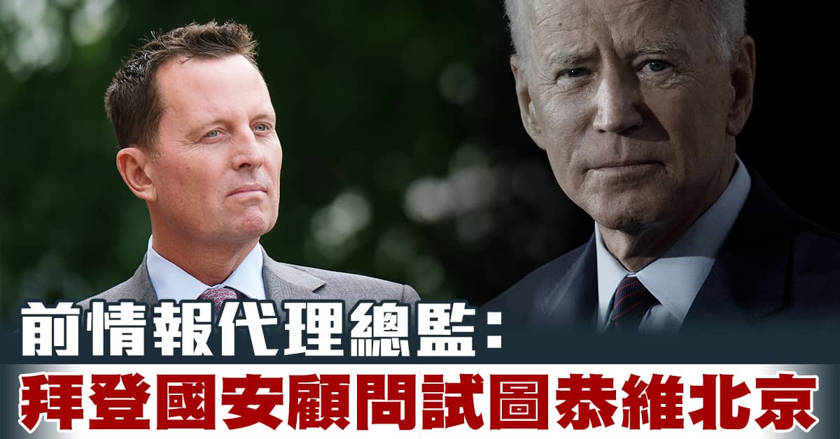 美國前代理國家情報總監 格雷內爾(2020.12.20):「我非常擔心的不僅僅是拜登和他的家族、他們過去對中共的反應。我們可以看看過去的例子,還有他(拜登)身邊的人。我的意思是,看看傑克‧蘇利文,他真的試圖在恭維北京(政權)。」「我們必須更加主動地意識到中共是危機,但太多的民主黨人試圖告訴我們,俄羅斯才是危機。」「我們必須確切地認識到,中共一直在玩弄我們。現在是時候大聲說出這個事實了:國際社會失敗了;美國沒有認識到他們中共是個明顯的、現實的危險。」