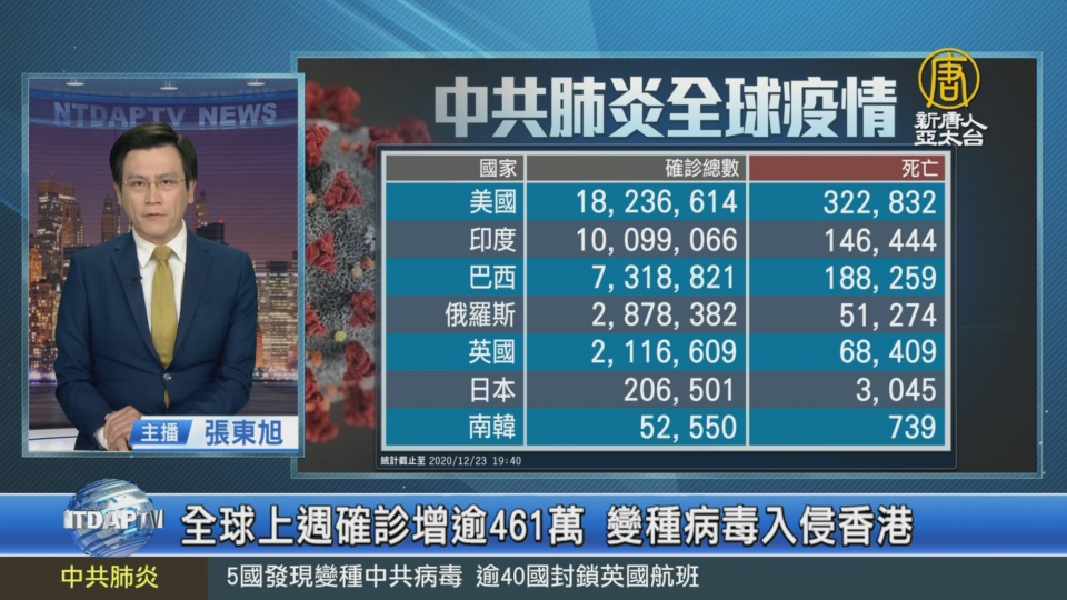 英國近日通報發現傳染力更強的中共病毒新變種,目前全球至少46個國家地區宣布暫時禁止英國客機入境。
