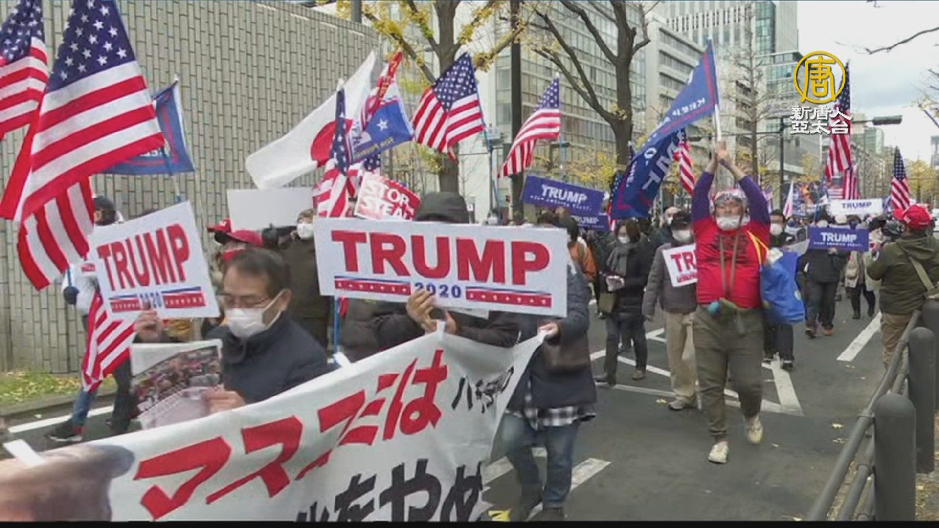 【新唐人亞太台 2020 年 12 月 23 日訊】美國大選全球矚目,日本人也相當關心,至少三次集會聲援川普、訴求停止偷竊選舉。今天(12月23日)傍晚,在東京日比谷有小型集會遊行,而上週日(12月20日),在大阪有九個團體發起大型集會遊行。第一次,則是11月29日的東京遊行。