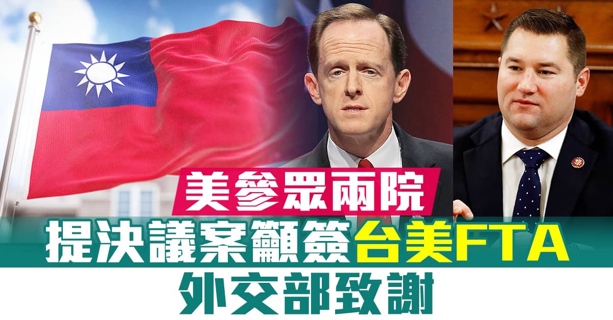 美參眾兩院提決議案籲簽台美FTA 外交部致謝