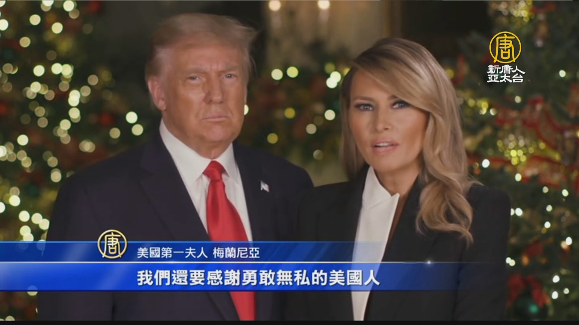 【新唐人亞太台 2020 年 12 月 25 日訊】美國總統川普台北時間今早五點,在推特上發出他與第一夫人梅蘭尼亞的近3分鐘的祝賀影片,川普在影片先介紹聖誕節的由來,感謝神的守護,川普夫婦還強調,今年聖誕節雖然遭疫情挑戰,但國家人民們的善良與勇氣,令人鼓舞。