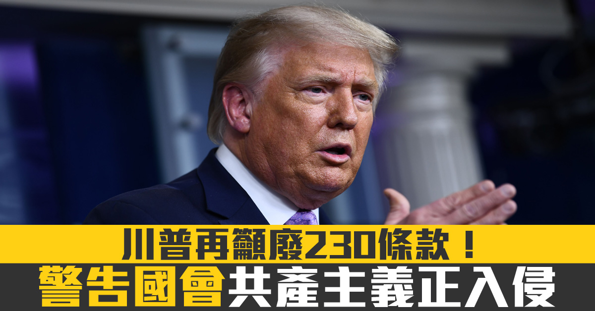 美國總統川普否決國防授權法案,要求修改230條款,這項條款保護網路平台,可以進行內容審查。
