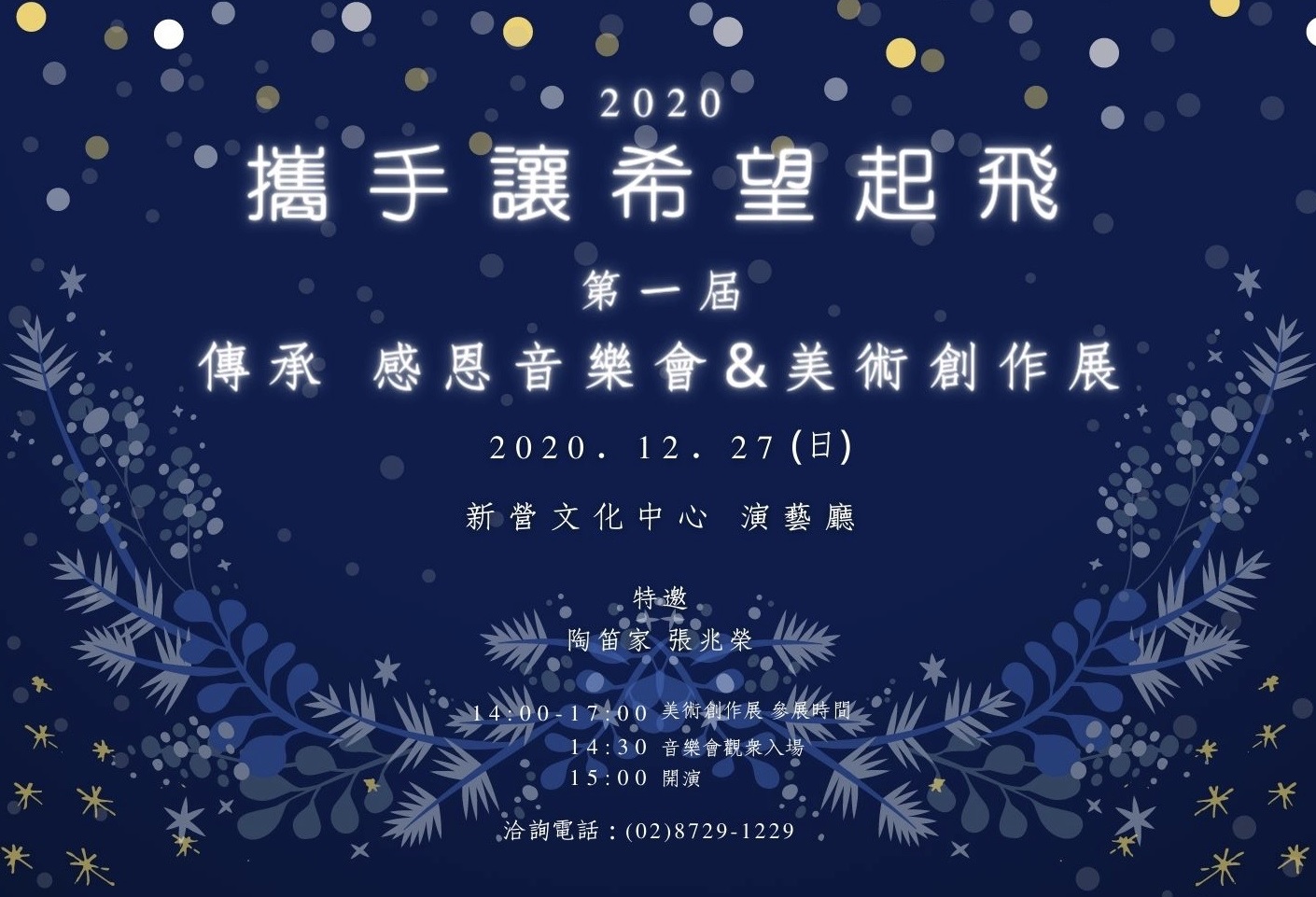 【新唐人亞太台 2020 年 12 月 25 日訊】雲林縣蔦松藝術高中,第一屆攜手讓希望起飛 傳承感恩音樂會&美術創作展,將於12/27(日)在新營文化中心演出,匯集不同領域的年輕藝術家,以古典音樂與現代音樂為基礎,點綴出古典舞與傳統武術的風采,用古典音樂的方式呈現台灣傳統藝術價值,希望在2020年最後,用誠摯的感恩之心帶給民眾最優質的音樂饗宴,為大家迎接更美好的一年!