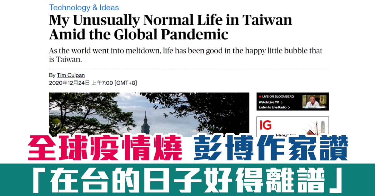 2020大疫之年 彭博作家讚「在台的日子好得離譜」