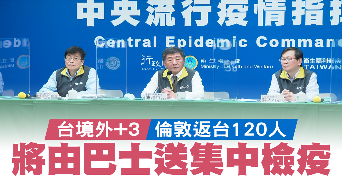 台境外+3 倫敦返台120人將由巴士送集中檢疫