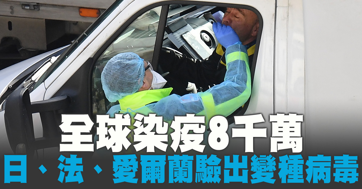 全球染疫8千萬 日、法、愛爾蘭驗出變種病毒