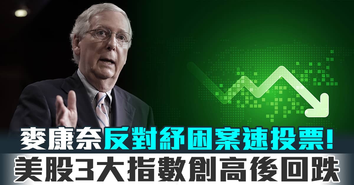 麥康奈反對紓困案速投票!美股3大指數創高後回跌
