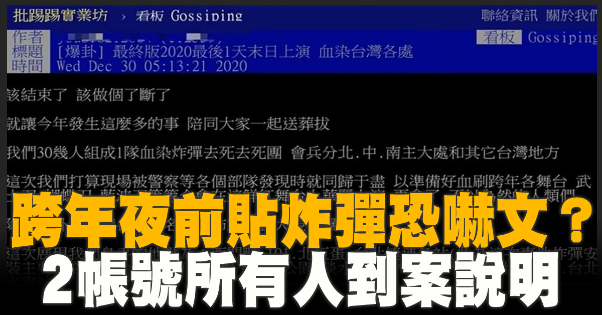 跨年夜前貼炸彈恐嚇文? 2帳號所有人到案說明
