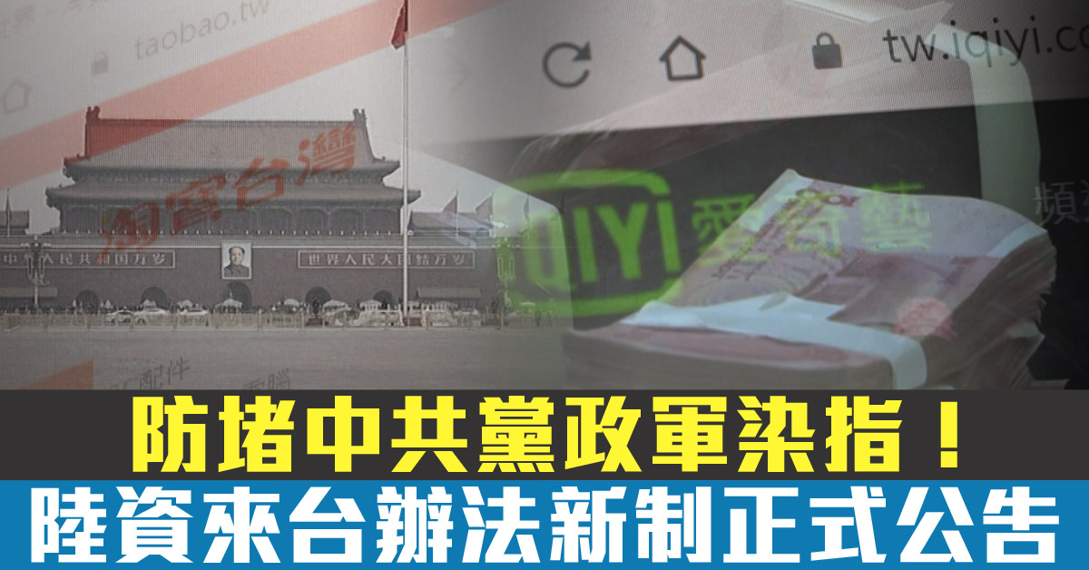 防堵中共黨政軍染指!陸資來台辦法新制正式公告