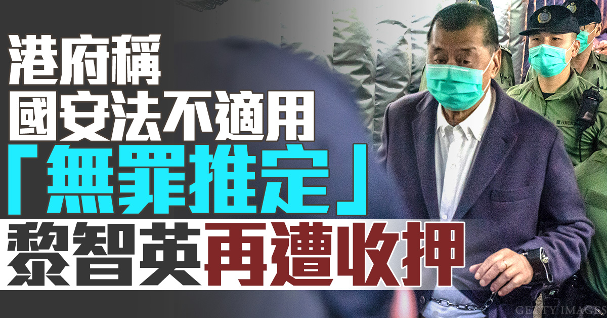 港府稱國安法無「無罪假定」黎智英遭綁鐵鏈還押