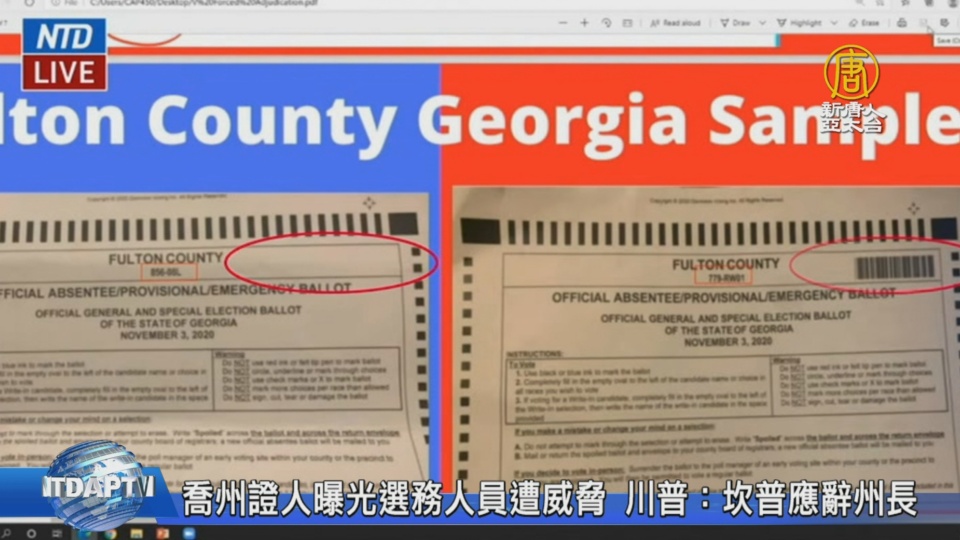 【新唐人亞太台 2020 年 12 月 31 日訊】美國喬治亞州的參議院司法委員會,在30日針對美國大選發生的公正性問題,舉行聽證會。整場聽證會進行了5個小時,其中有證人指出,喬治亞州同一個郡政治傾向不同的選區,有不一樣的選票,令人擔憂。還有證人指證,喬州州務卿派人威嚇選務人員,並在無人監票的情況下,進行重新計票。