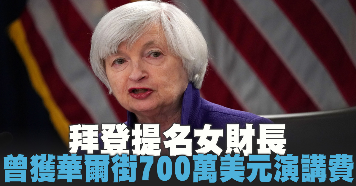 美聯社報導,民主黨總統候選人拜登提名的財政部長,美國聯邦準備理事會(Fed)前主席葉倫(Janet Yellen),從2018年離開聯準會後,在2019年和2020的2年期間,從花旗集團、高盛和谷歌等公司的50多場演講中,收取了700萬美元的演講費用。