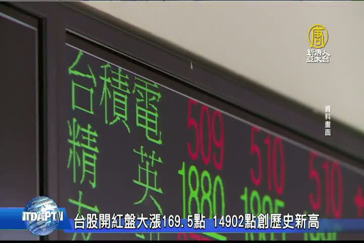 台股開紅盤大漲169.5點 14902點創歷史新高