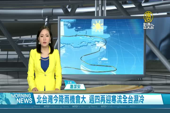 【新唐人亞太台 2021 年 01 月 05 日訊】歡迎您收看1月5日的早安新唐人,我是唐潔安,先來帶您關心今天的天氣情況。今天開始,東北季風增強,北台灣降雨機率增加,中南部地區日夜溫差大。另外,週四(6日)會再迎來今年第二波寒流,預計影響持續到週六,提醒您留意保暖。帶您一起來看到國際媒體重要訊息。