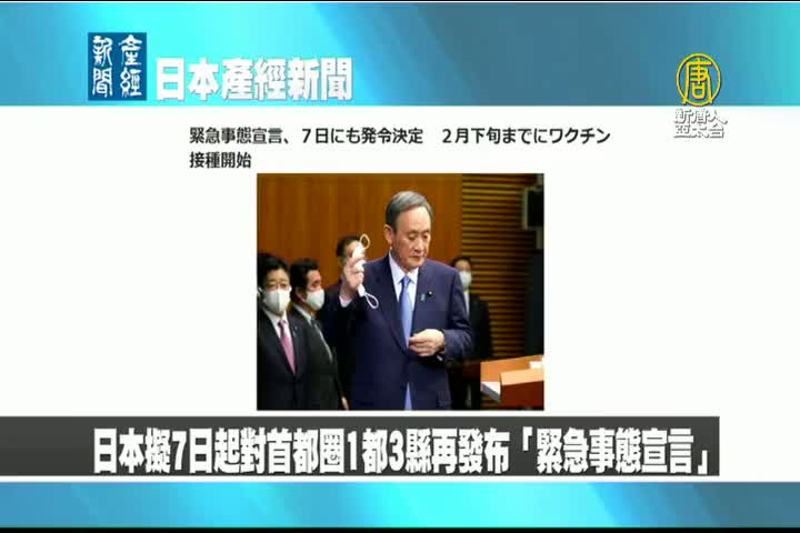【新唐人亞太台 2021 年 01 月 05 日訊】來看到日本產經新聞報導:日本預計7日起對首都圈東京都、千葉等3縣再發布「緊急事態宣言」。