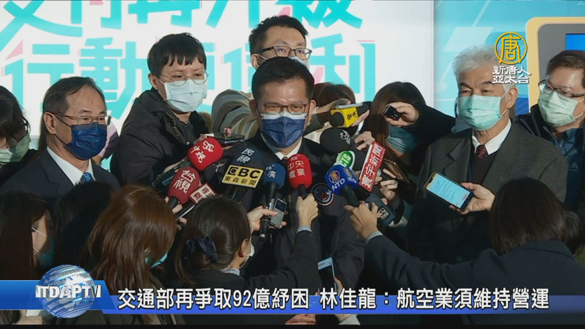 【新唐人亞太台 2021 年 01 月 05 日訊】全球疫情持續升溫!飛機飛不出去,衝擊較大的航空業和觀光業,更是損失慘重。台灣交通部長林佳龍今天(5日)表示,已經向行政院提出新一波的紓困方案,初步達台幣92億元,不過最終額度和補助項目,將由這一周行政院會決定。