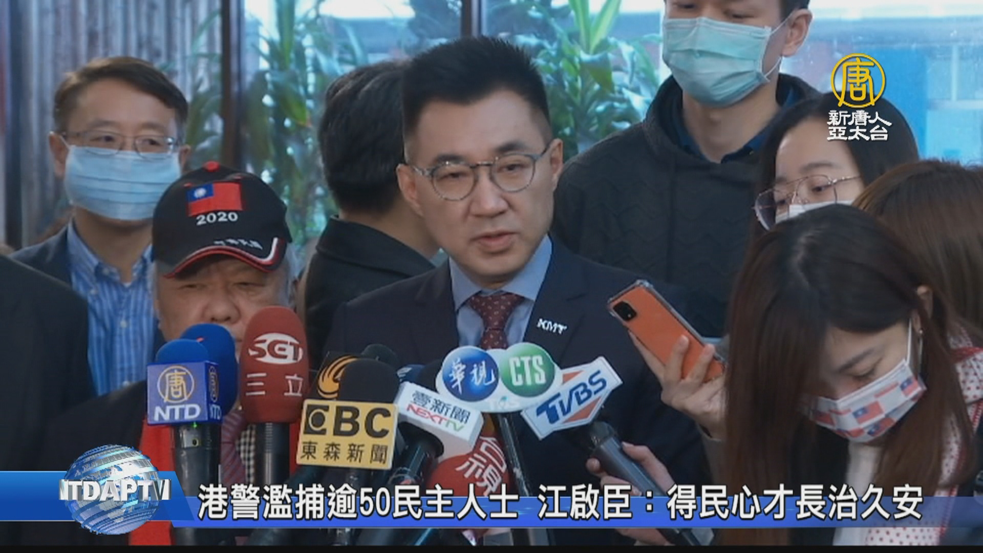 【新唐人亞太台 2021 年 01 月 06 日訊】6號上午,香港再一次發生大抓捕,港警以違反國安法「顛覆國家政權」為由,大動作上門抓捕至少52位的泛民主派人士,台灣政界也表示關切,國民黨主席江啟臣今天呼籲北京,得民心才能長治久安。