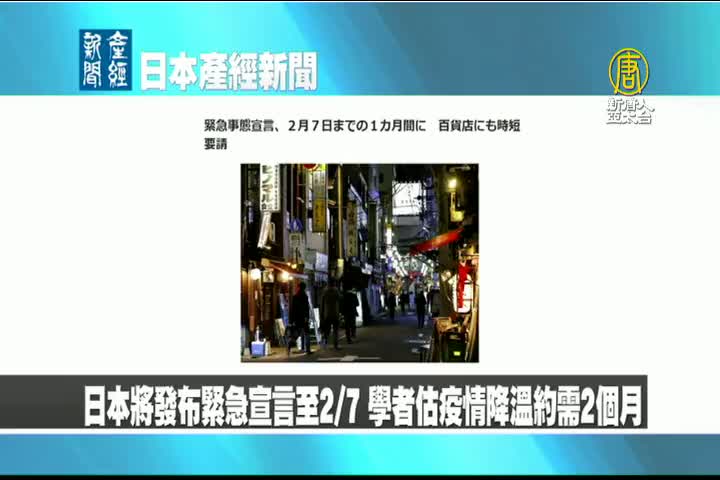 【新唐人亞太台 2021 年 01 月 07 日訊】來看到日本產經新聞報導:日本將發布緊急事態宣言至2月7號,學者預估疫情降溫約需要2個月。