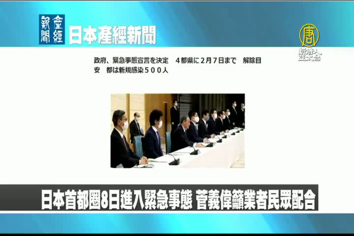【新唐人亞太台 2021 年 01 月 08 日訊】來看到日本產經新聞報導:日本首都圈8日進入緊急事態,首相菅義偉呼籲業者民眾配合。