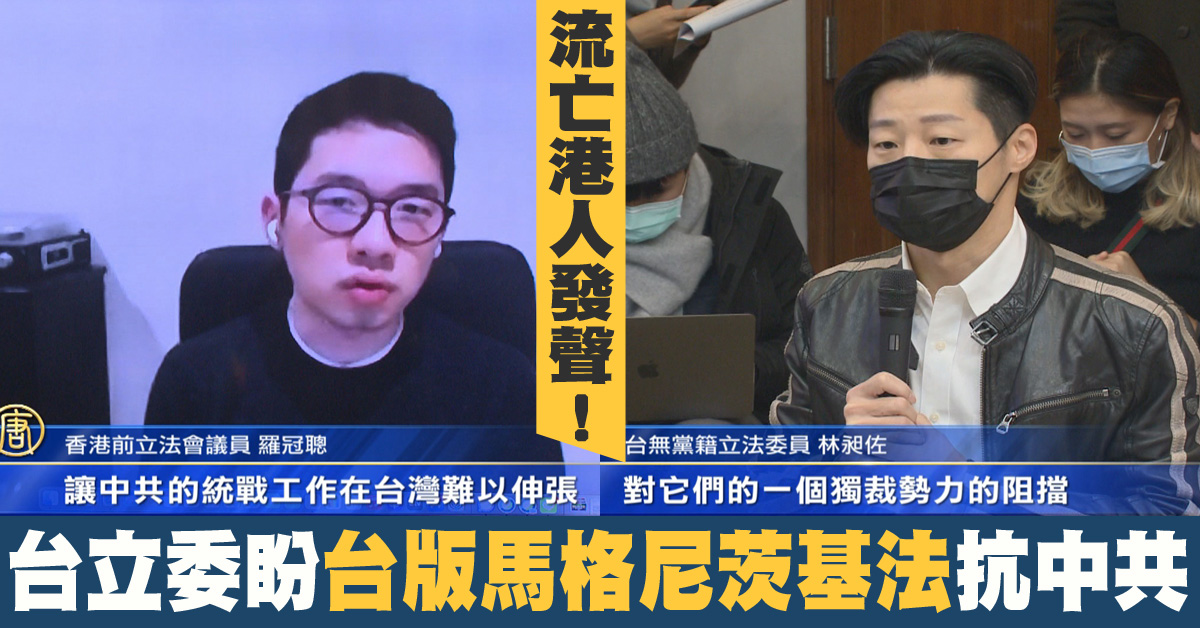 【新唐人亞太台 2021 年 01 月 08 日訊】香港大抓捕事件震撼國際,今天,流亡海外的香港立法會前議員羅冠聰透過視訊連線,感謝台灣長久以來的支持,期待台灣政府未來對港人的政治庇護規定能夠更有制度。另外,台灣立委林昶佐認為,應該要推動台灣版本的馬格尼茨基人權問責法,串聯亞洲國家,對抗中共。