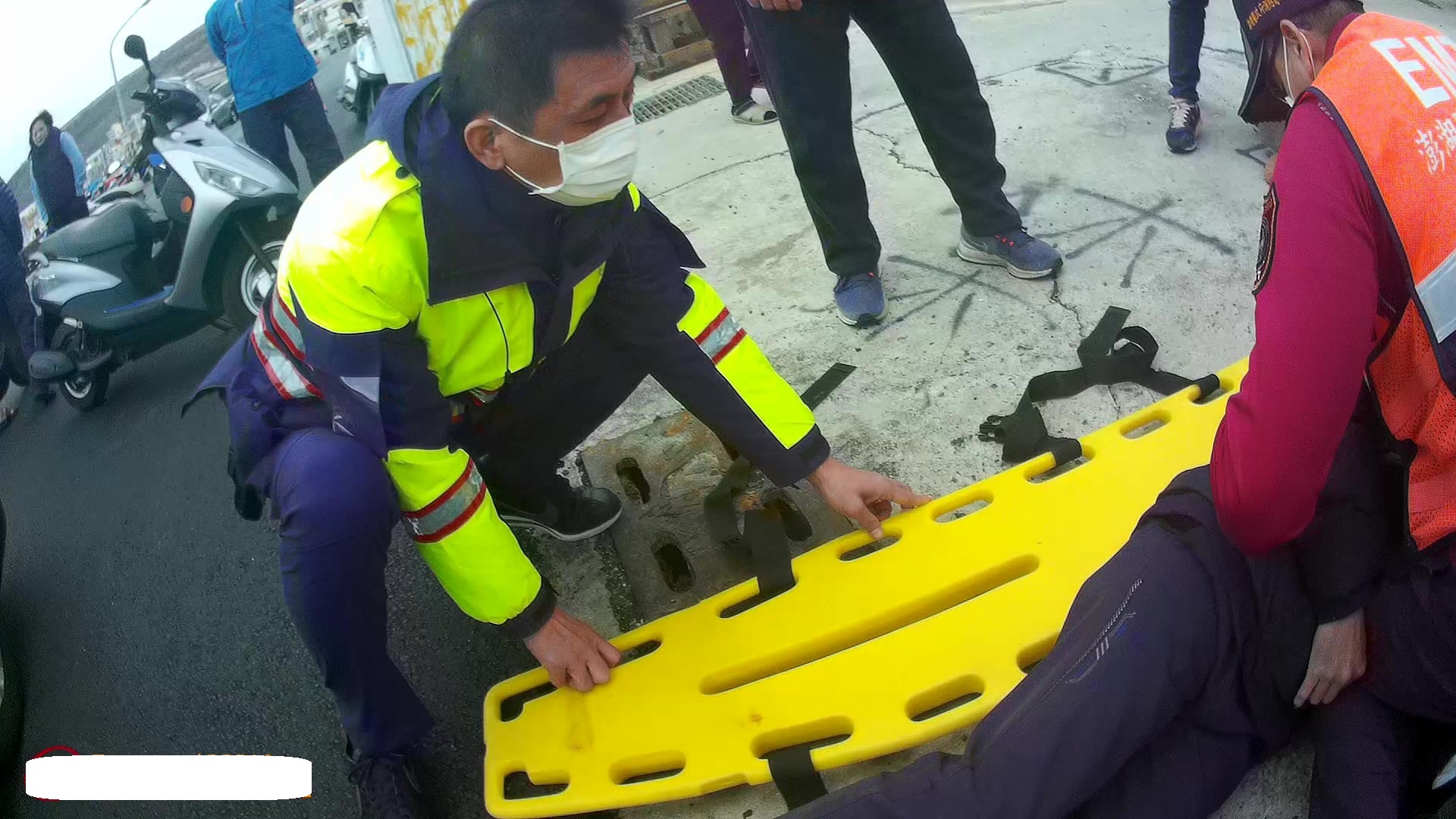 澎湖員警發現民眾摔倒路邊,緊急通知消防隊到場救護。(圖/澎湖縣政府警察局提供)
