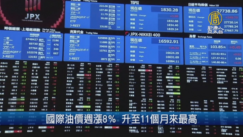 【新唐人亞太台 2021 年 01 月 09 日訊】國際油價週漲8% 升至11個月來最高