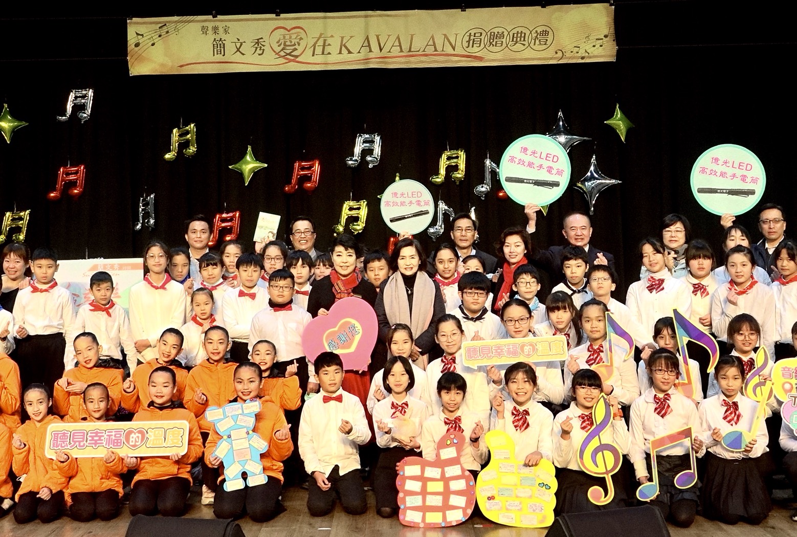聲樂家簡文秀及宜蘭縣長林姿妙與小朋友合影。(億光文化基金會提供)