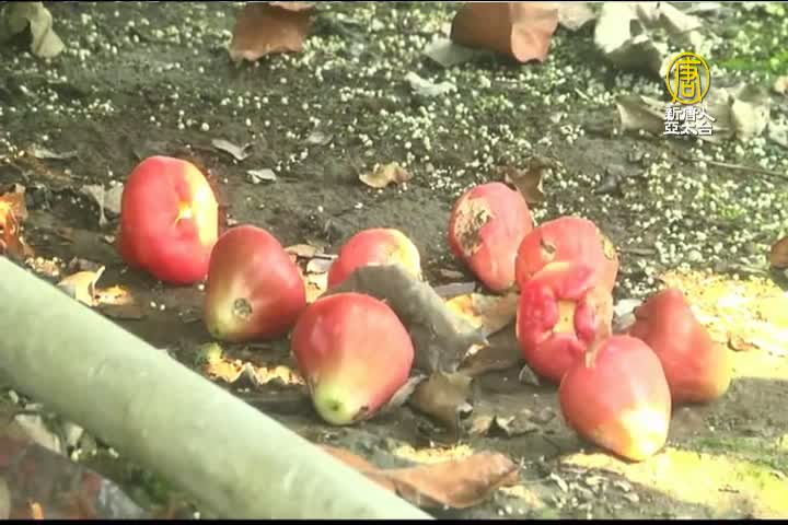 【新唐人亞太台 2021 年 01 月 11 日訊】寒流接力報到,截至11日傍晚為止,屏東縣統計農業產物損失超過6千萬,主要是正值採收期的熱帶水果蓮霧,遭遇寒害,高達8成嚴重落果,10日,行政院長蘇貞昌偕同農委會主委陳吉仲,到屏東視察蓮霧農損,並啟動現金救助農民機制。