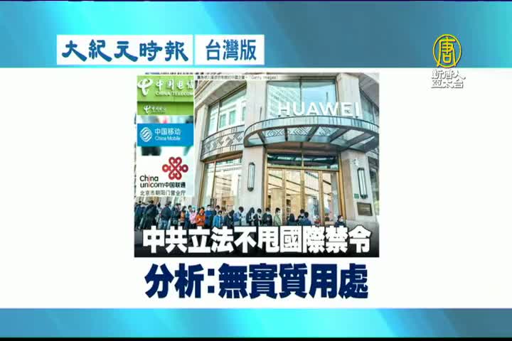 【新唐人亞太台 2021 年 01 月 12 日訊】繼續看到大紀元時報台灣版報導:中共立法不甩國際禁令,分析認為,沒有實質用處。