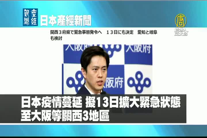 【新唐人亞太台 2021 年 01 月 12 日訊】來看到日本產經新聞報導:日本疫情蔓延,預計13日擴大緊急狀態至大阪等關西3地區。