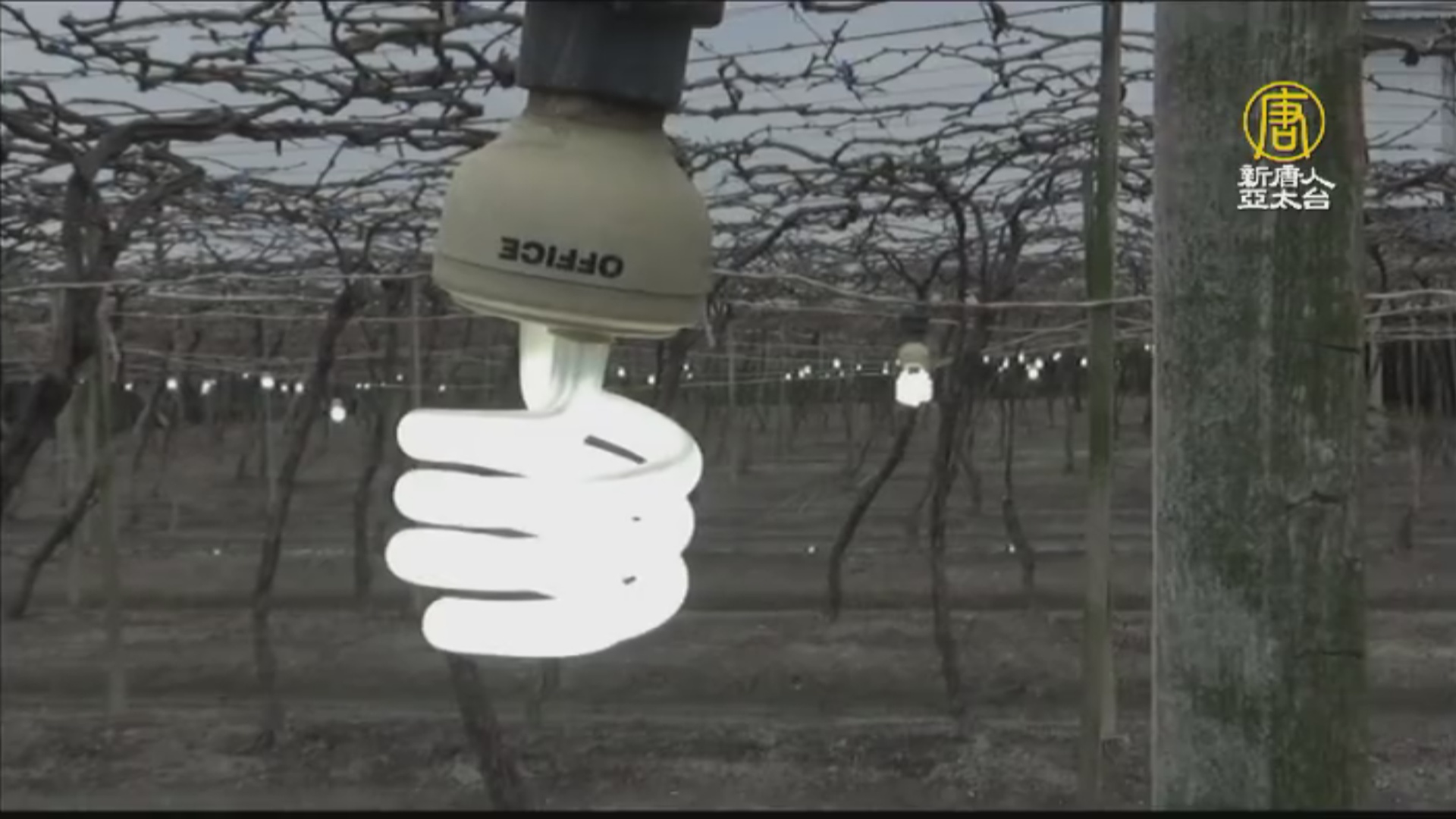 【新唐人亞太台 2021 年 01 月 12 日訊】連日低溫讓植物也受不了,彰化有葡萄農,為了讓植株更能抵抗寒冷天氣,在葡萄園裡面點燈,增加光合作用時間,也有種植印加果的農民,利用透明塑膠布來禦寒,希望能幫這些果樹們,度過寒冬。