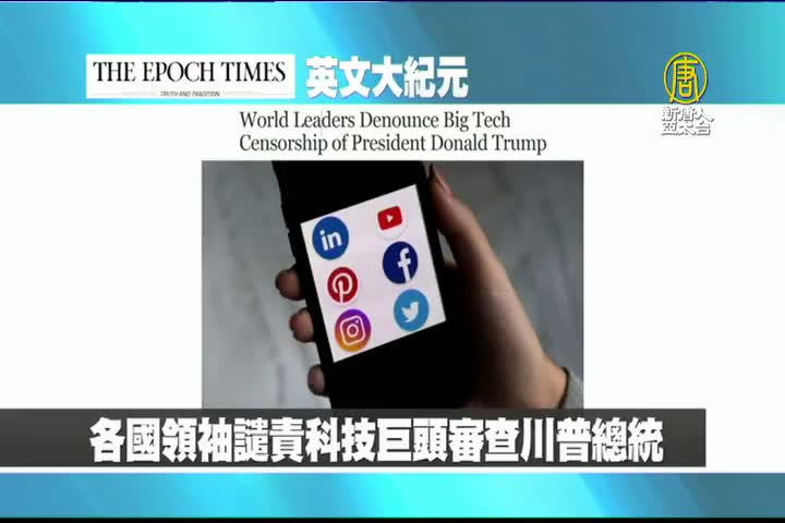 【新唐人亞太台 2021 年 01 月 13 日訊】首先來看到美國大紀元英文版報導:各國領袖譴責科技巨頭審查川普總統。
