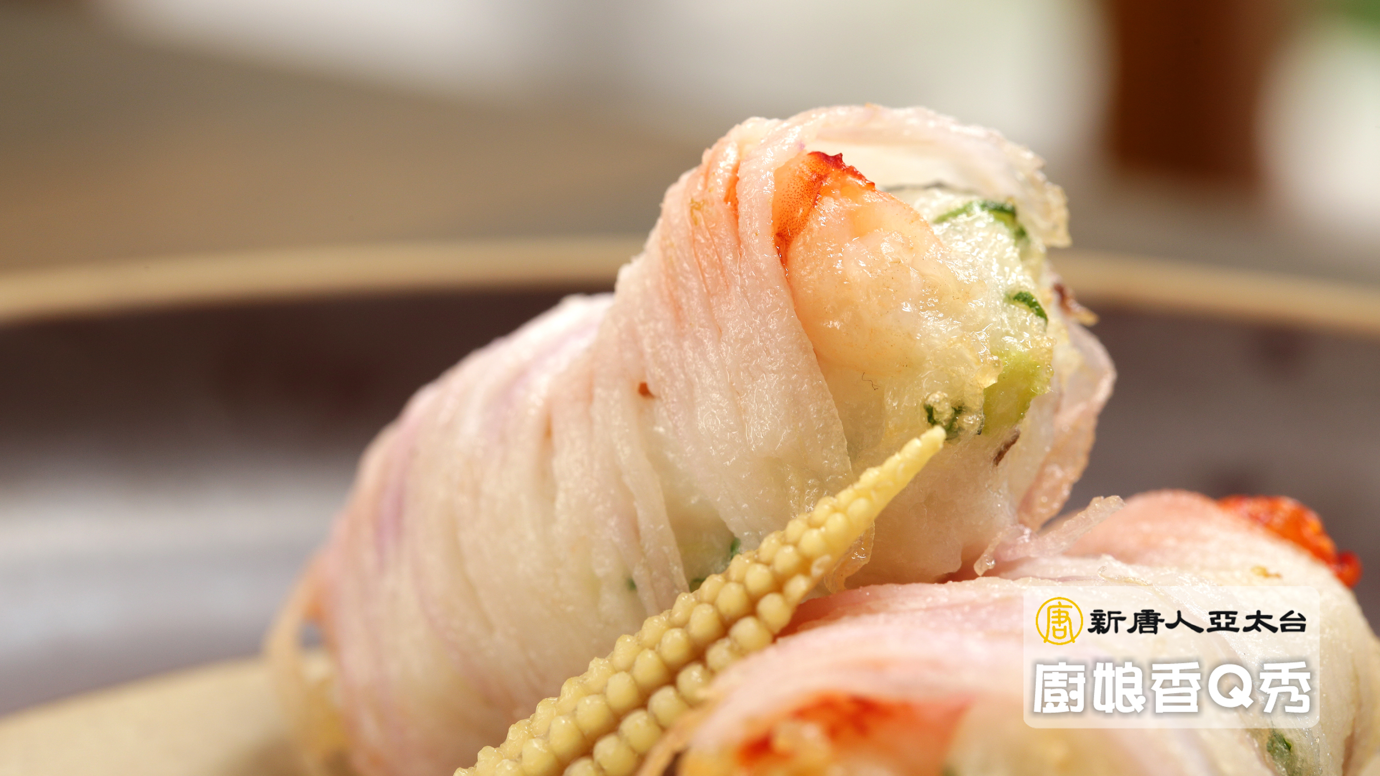 2020中華國際美饌廚藝競賽中餐職業組金牌、中餐職業組最高分小金人朱國凱,從小在夜市路邊攤長大,他分享的紫山藥鮮蝦捲佐紫蘇梅醬/古早味雞捲佐甜辣醬汁讓人讚不絕口!