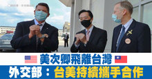 美次卿飛離台灣 外交部:台美持續攜手合作