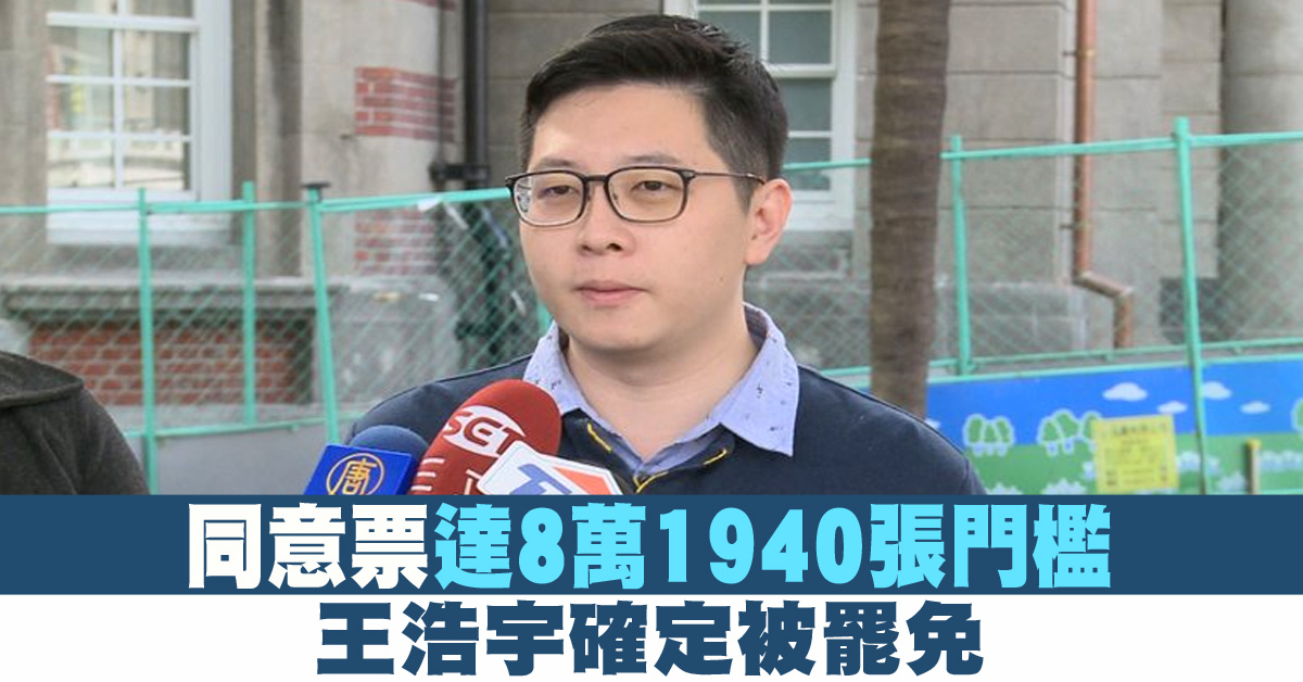 同意票達8萬1940張門檻 王浩宇確定被罷免