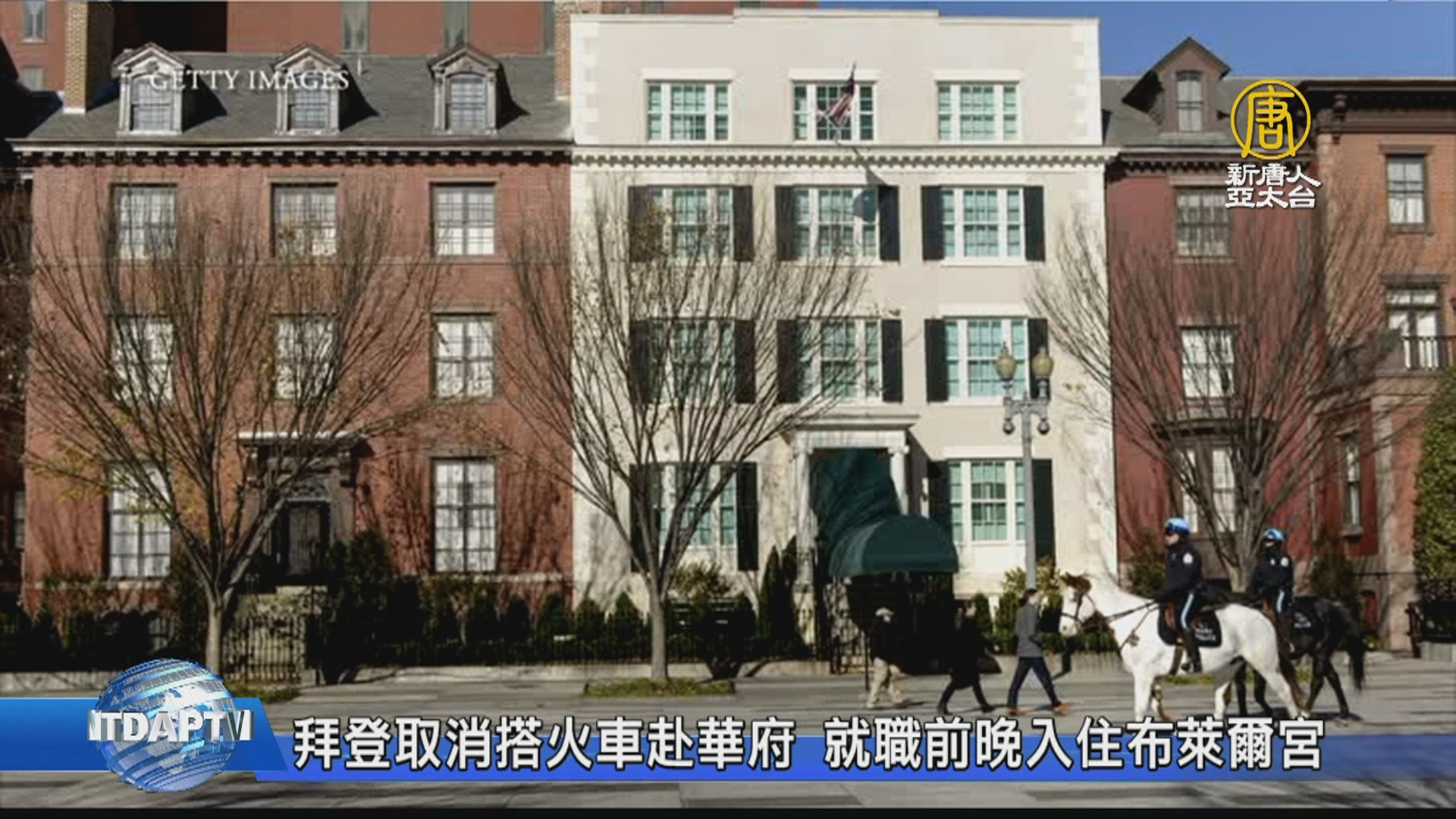 【新唐人亞太台 2021 年 01 月 16 日訊】再來關心,美國政壇消息,外媒報導,消息人士透露,基於維安的考慮,美國總統當選人拜登已取消在就職典禮前乘坐美國國鐵到華盛頓特區。不過,美國國務院發言人告訴福斯新聞,白宮已提議讓拜登在就職典禮前一晚使用布萊爾宮,而拜登接受了這一提議。