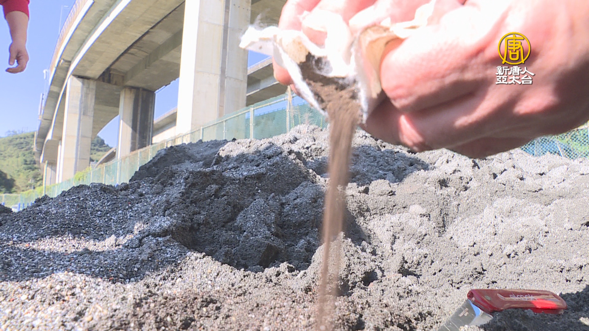 棒球隊教練 霜逸祥:「那時候就想說突發奇想,就是看到有棒球隊募來補這個球場的坑坑洞洞,我們會跟旁邊原本的這個溪沙,把它和一和,然後我們再去補那個小坑洞。」