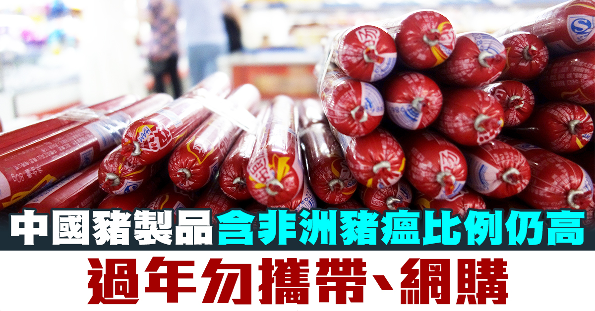 中國豬製品含非洲豬瘟比例仍高 過年勿攜帶.網購