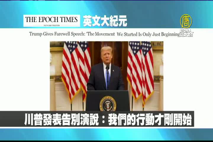 【新唐人亞太台 2021 年 01 月 20 日訊】首先來看到,美國大紀元英文版,川普發表告別演說,指出:我們的行動才剛開始。