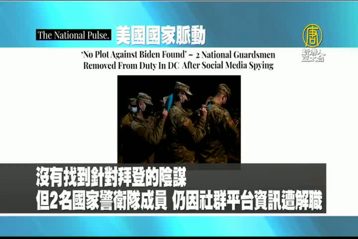 【新唐人亞太台 2021 年 01 月 20 日訊】來看到美國國家脈動的報導,儘管沒有找到針對拜登的陰謀,但2名國家警衛隊成員,仍然因為社群平台的資料遭到解職。