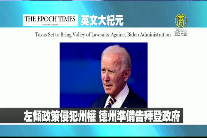 【新唐人亞太台 2021 年 01 月 21 日訊】首先來看到美國大紀元英文版報導:左傾政策侵犯州權,德州準備對拜登政府,提出法律訴訟。