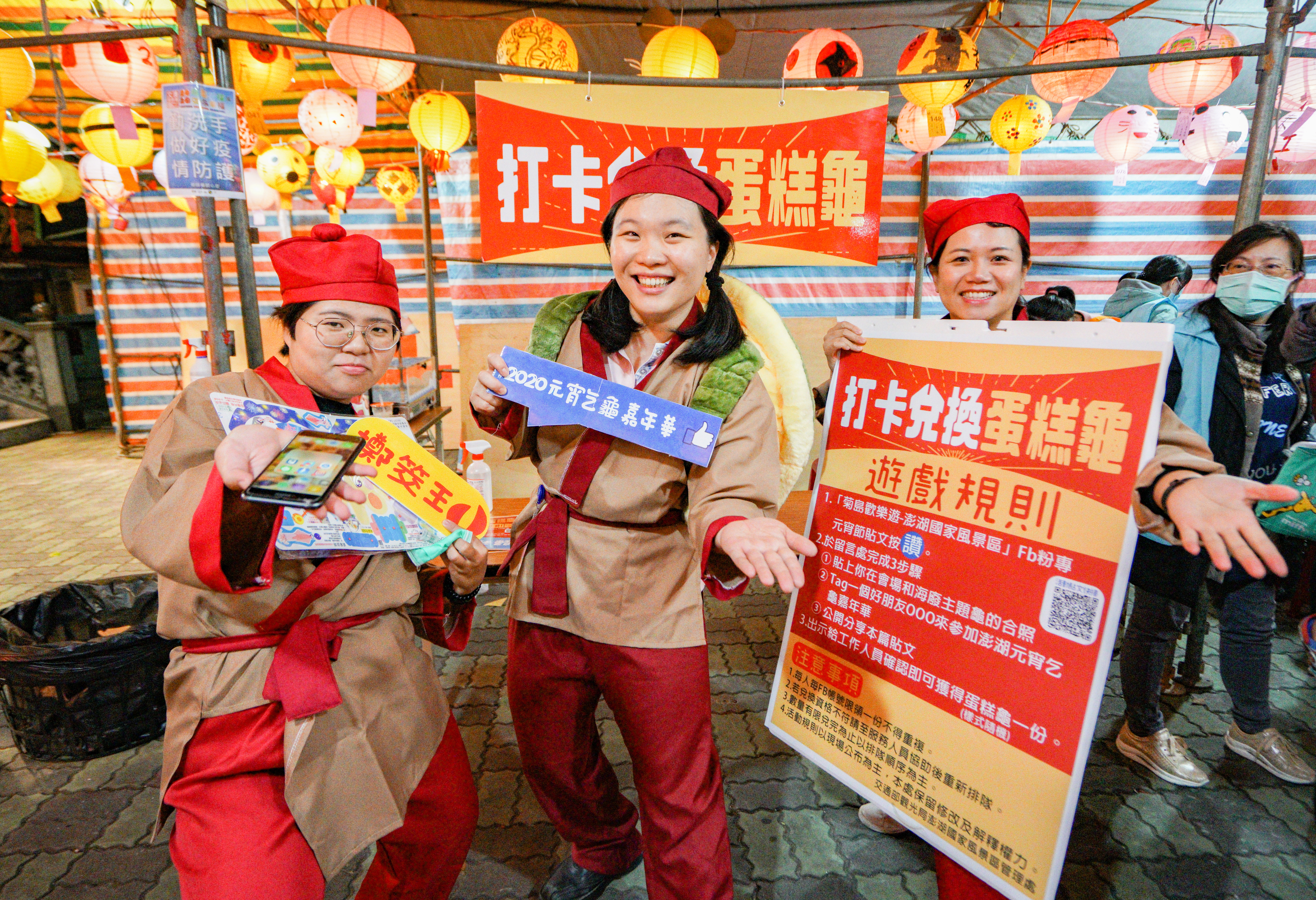 元宵節一向是澎湖節慶的重頭戲,比過年還要熱鬧,為了讓遊客感受其中的熱鬧氛圍,澎管處規劃於2月24日至3月1日,推出應景的「元宵遊澎湖送『綠蠵龜公仔』及『澎湖平安龜紀念幣』活動」,非澎湖籍遊客,憑證至澎湖機場旅遊諮詢台或澎湖觀光產業推廣中心服務台,就可參加摸彩活動。