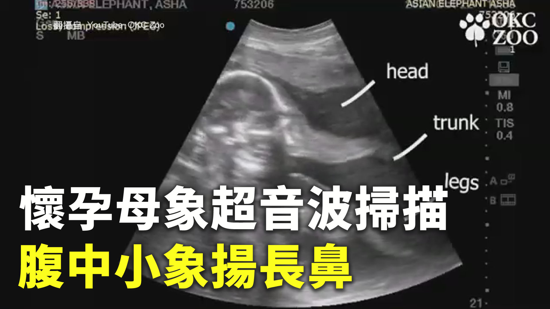 【新唐人亞太台 2021 年 01 月 23 日訊】你可能有看過胎兒的超音波掃描圖,但你有見過小象在母象肚子裡的超音波掃描圖嗎?美國奧克拉荷馬州的奧克拉荷馬市立動物園(Oklahoma City Zoo)最近分享了一隻小象在象媽媽腹中的超音波掃描圖,小象的鼻子在媽媽肚子裡揮動的模樣,很可愛。