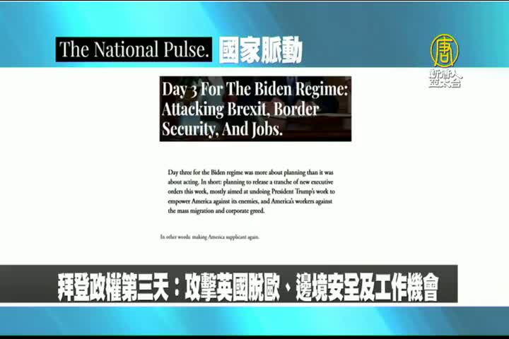【新唐人亞太台 2021 年 01 月 26 日訊】繼續是美國國家脈動的報導:拜登政權第三天:攻擊英國脫歐、邊境安全及工作機會。