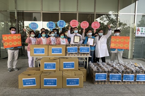 【新唐人亞太台 2021 年 01 月 27 日訊】國際扶輪3501地區竹北扶輪社發動《醫起來 挺醫護》,感謝全體醫護人員盡心盡力,守住疫情。25日由社長吳椿琳帶領社友幹部代表,捐贈雞排與奶茶給竹北地區的中國醫藥大學新竹分院。希望藉此活動拋磚引玉,引起迴響,除了桃園醫院需要給與力挺之外,全國各地所有醫護人員也一樣需要我們關心。