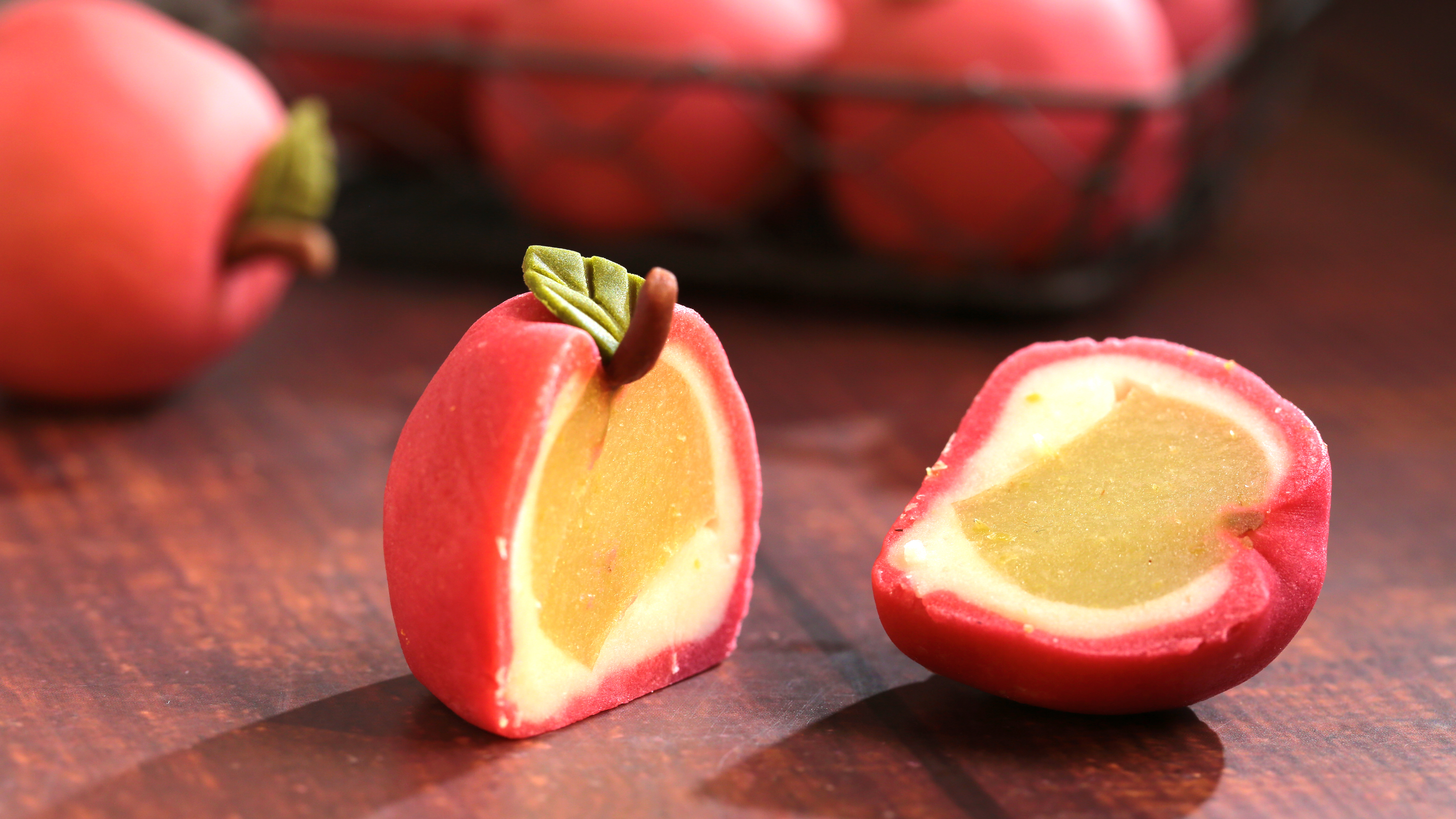 高顏值又好吃的仿真水果,不只顏色、外型逼真,連內餡滋味都令人驚喜!藍帶高級西點師麥田金老師分享平平安安蘋果菓子,夾心水晶凍就是用青蘋果果泥。