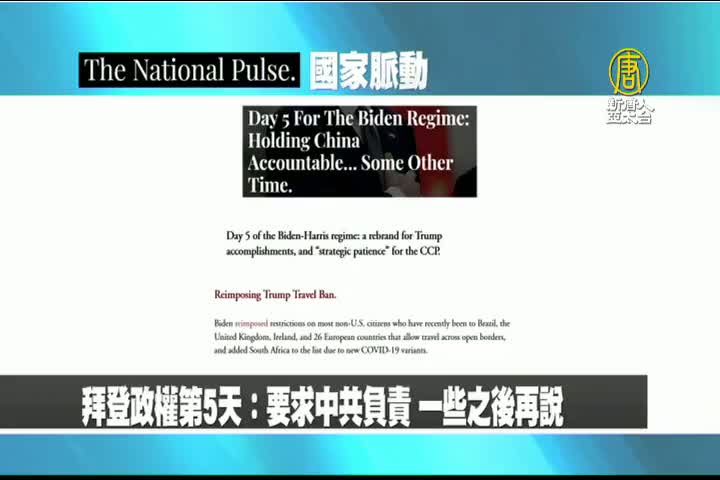 【新唐人亞太台 2021 年 01 月 28 日訊】繼續是美國國家脈動的報導:拜登政權第5天,要求中共負責,一些之後再說。